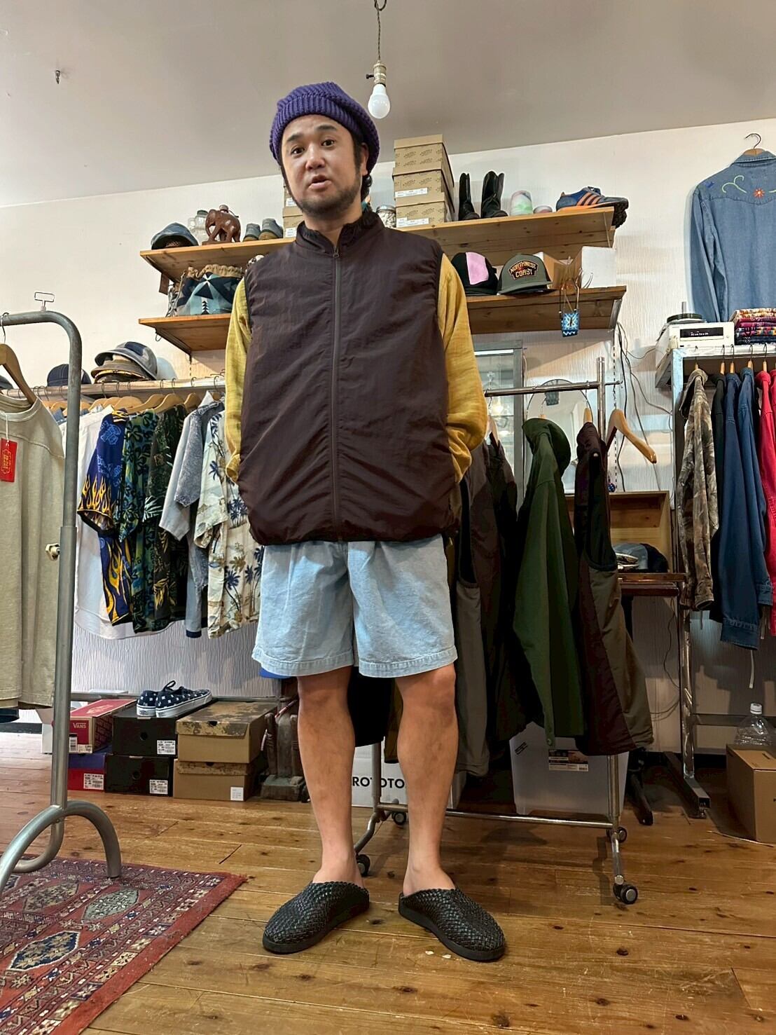 今回はdead stockでオーバーサイズの2タックショーツにウエストへゴムと紐を