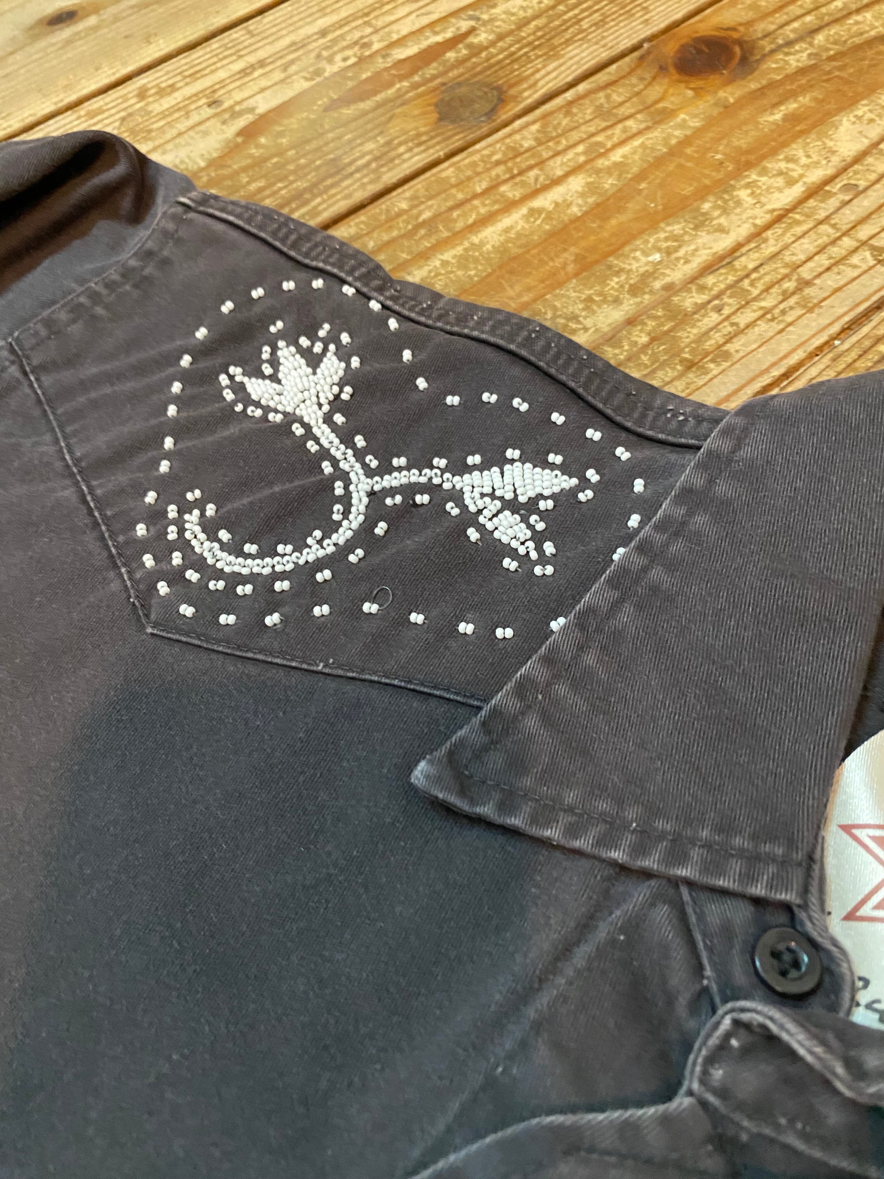 アメリカ現地で仕入れたビーズを使用してビーズ刺繍されてます、