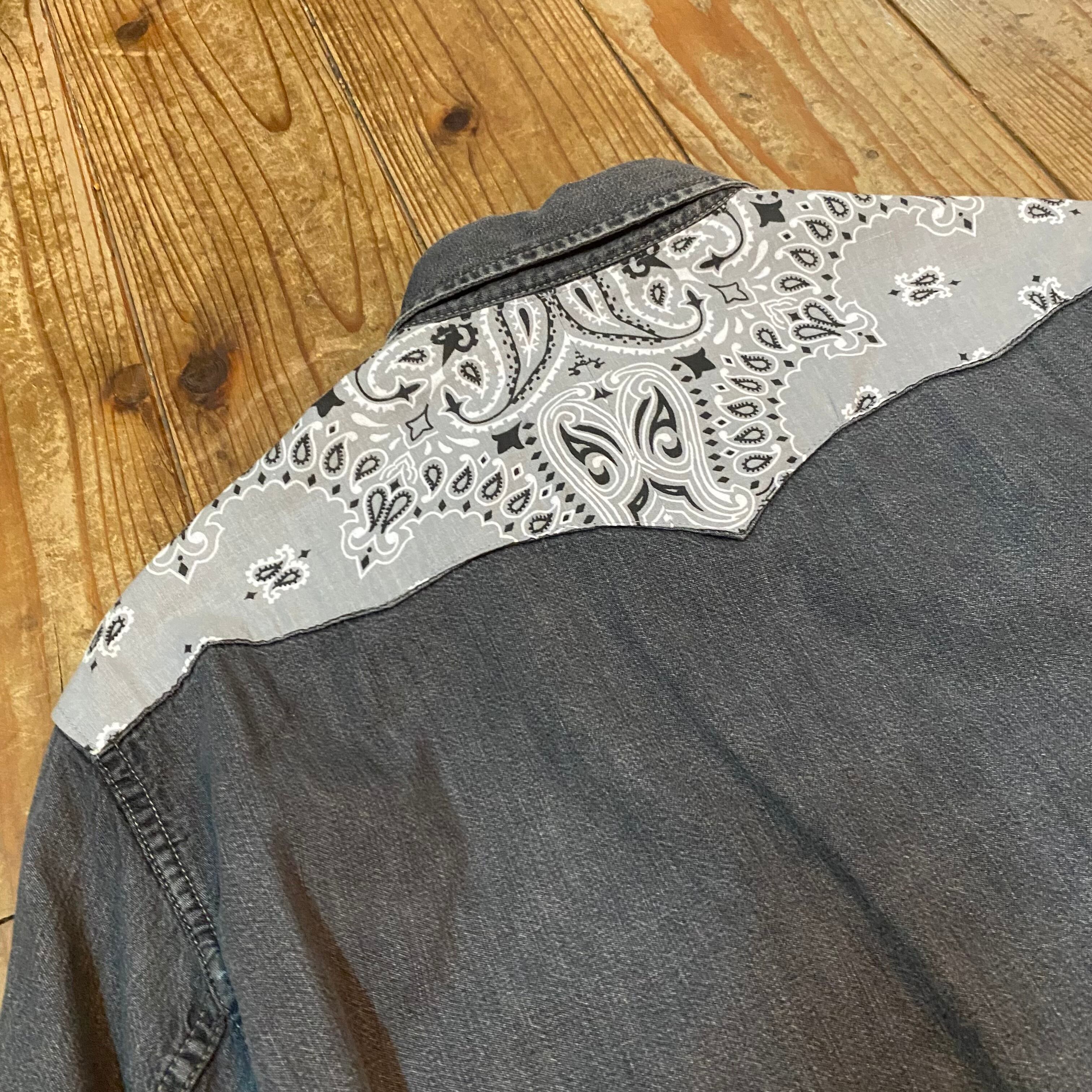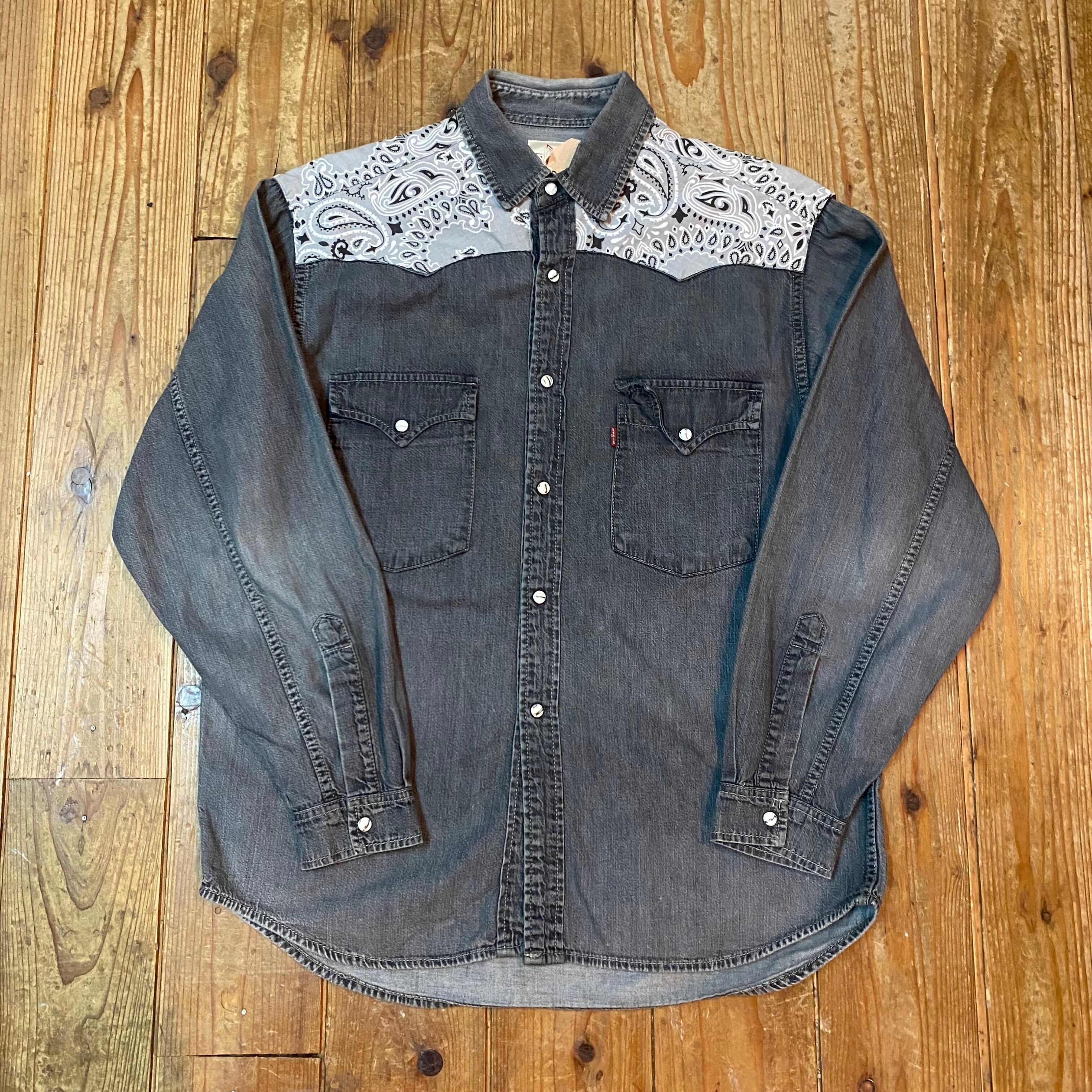 usedリーバイスのウェスタンシャツにヨーク部分へバンダナをあしらっております