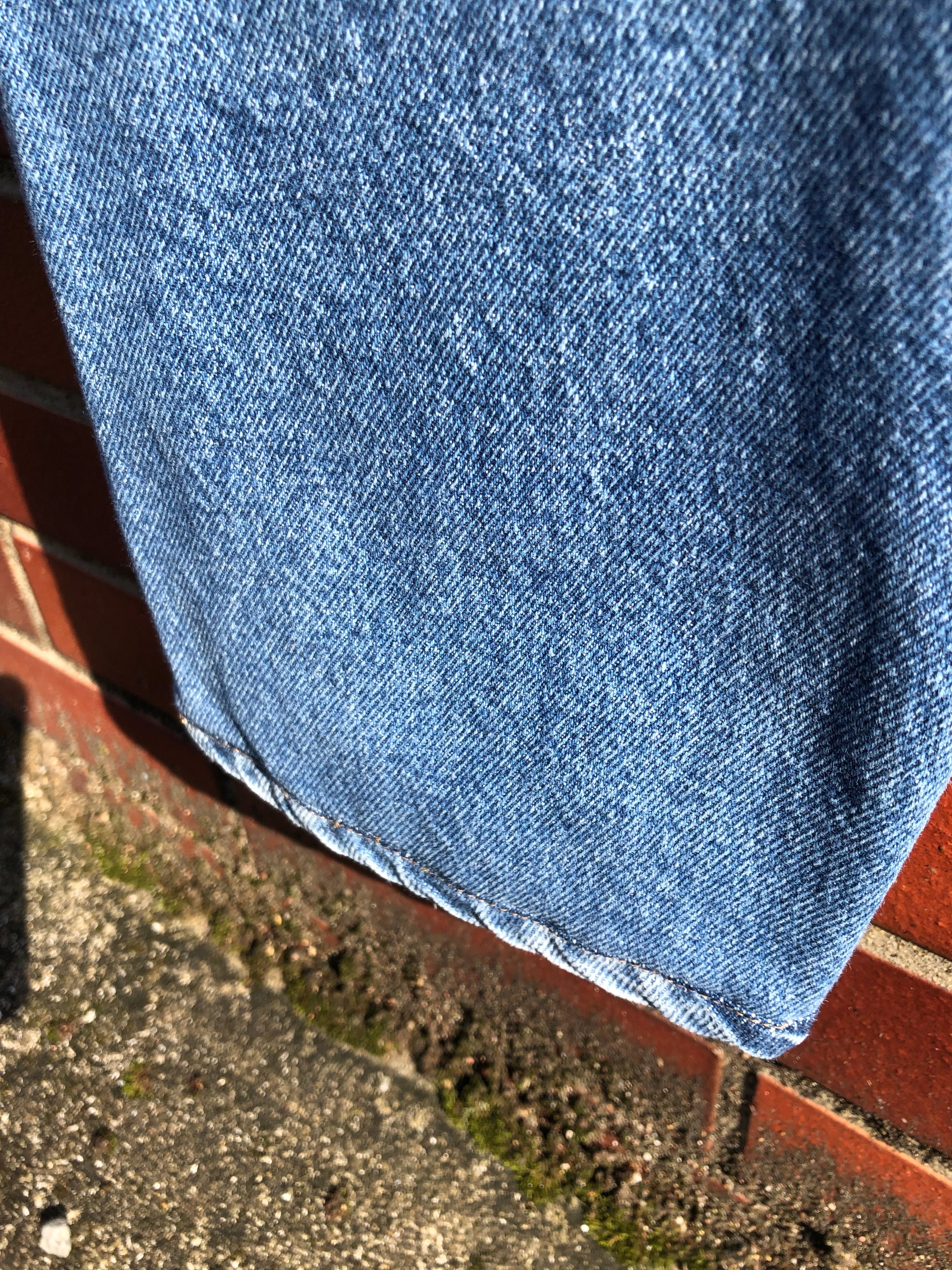 パッチワーク部分は古着の刺繍生地やラグ、ミリタリー生地、コーデュロイなどをデニムの色味に合わせて組み合わせ
